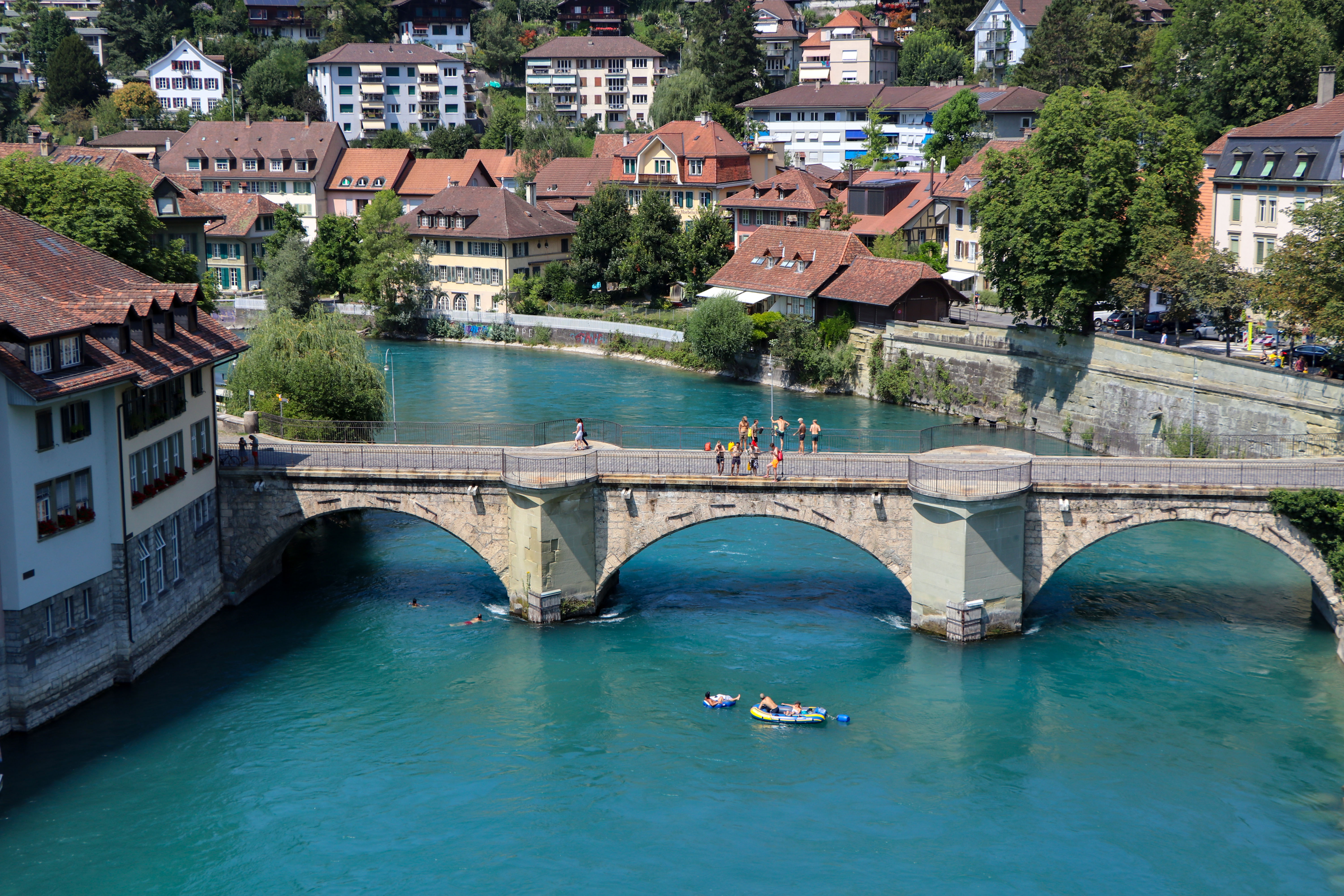 Herzlich Willkommen in Bern! Das UNESCO Weltkulturerbe Bern wird von der Aare umströmt und überragt vom überwältigenden Alpenpanorama. Die romantische Hauptstadt verdankt ihren Reiz der Geschlossenheit des Stadtbildes. Sechs Kilometer Laubengänge, Figurenbrunnen aus der Renaissance, das Münster, weitgehend erhaltene Sandsteinfassaden sowie eine einzigartige Dächerlandschaft prägen das Bild der 1191 gegründeten Stadt, die eine der großartigsten Zeugnisse mittelalterlichen Städtebaus in Europa ist. Auch sonst ist Bern eine Stadt der Superlative: schönste Blumenstadt Europas, Geburtsort von Einsteins Relativitätstheorie, Wiege der Toblerone- Schokolade und Standort der größten Paul-Klee-Sammlung der Welt. Und weil Bern auf einer Halbinsel erbaut wurde, befindet sich alles nah beieinander und ist zu Fuß zu erreichen.